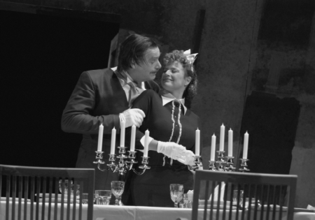 als Hermine in "Der Unbestechliche" mit Peter Simonschek (Theodor)